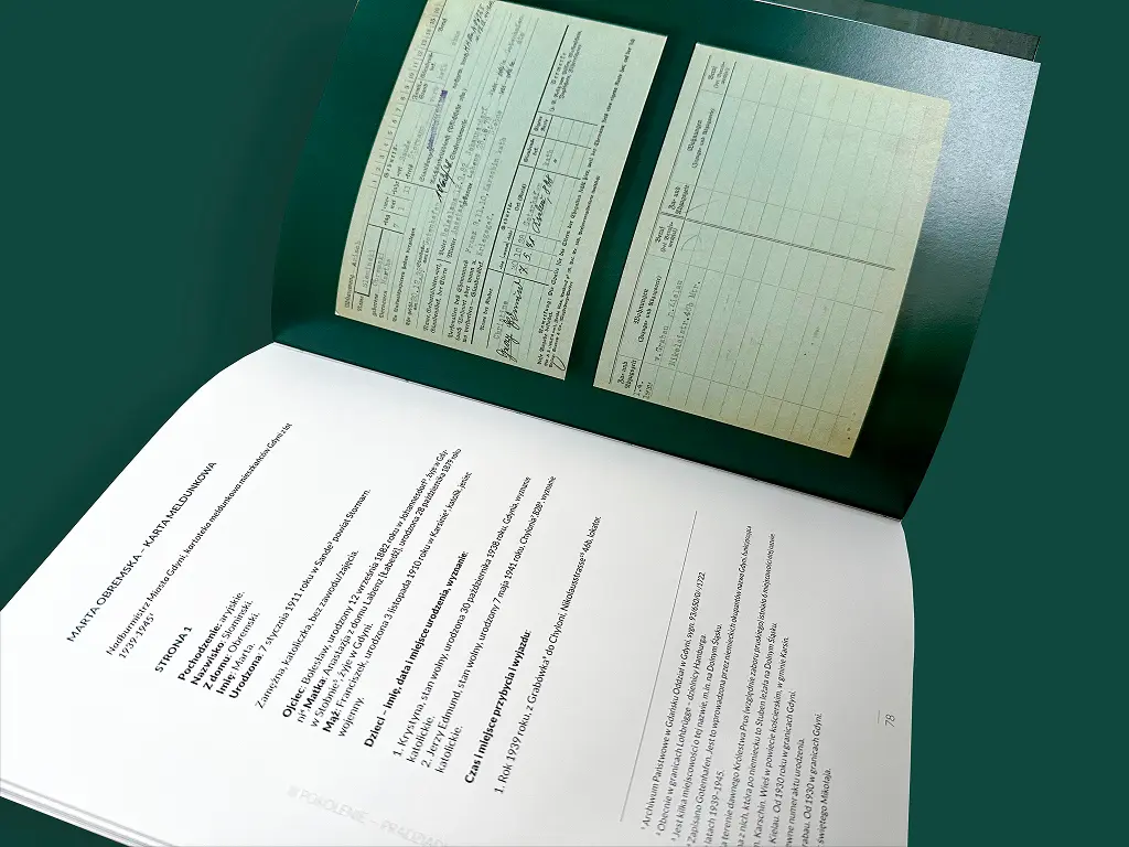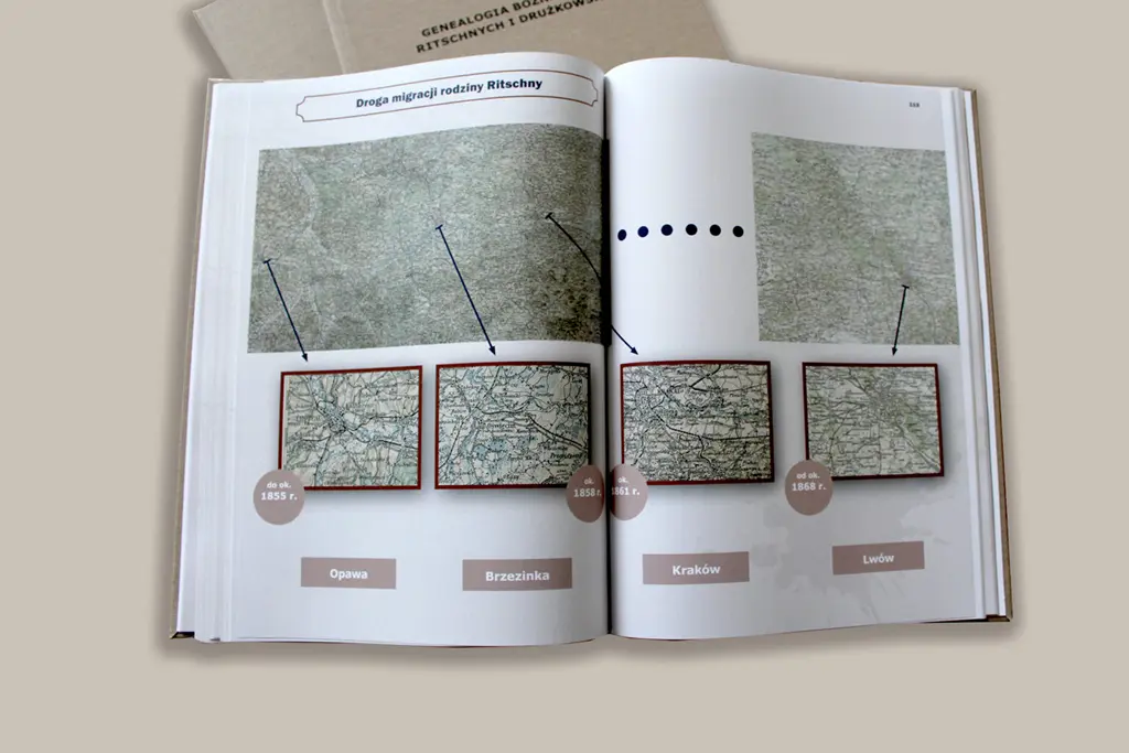 Co istotne, książka ta łączy cechy albumu rodzinnego i historycznej monografii. Dlatego też zawiera ona nie tylko surowe dane o przodkach, lecz także archiwalne fotografie, dokumenty, mapy oraz szeroki kontekst epoki, w której żyli. Należy bowiem pamiętać, że Twoi przodkowie nie funkcjonowali w próżni. W rzeczywistości żyli oni w konkretnym czasie i miejscu, co miało decydujący wpływ na ich codzienne losy.