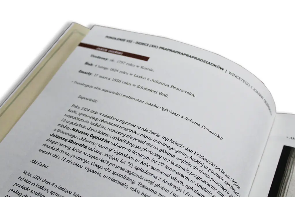 Po wielu miesiącach badań i odkrywania kolejnych kart rodzinnej historii, w końcu nadchodzi moment, w którym cała ta wiedza nabiera materialnej formy. Należy podkreślić, że księga rodzinna stanowi doskonałe zwieńczenie poszukiwań przodków. Jest to bowiem unikatowa publikacja, którą można nie tylko otworzyć i położyć na stole, ale również przekazać dzieciom oraz wnukom jako najcenniejszą pamiątkę rodu.